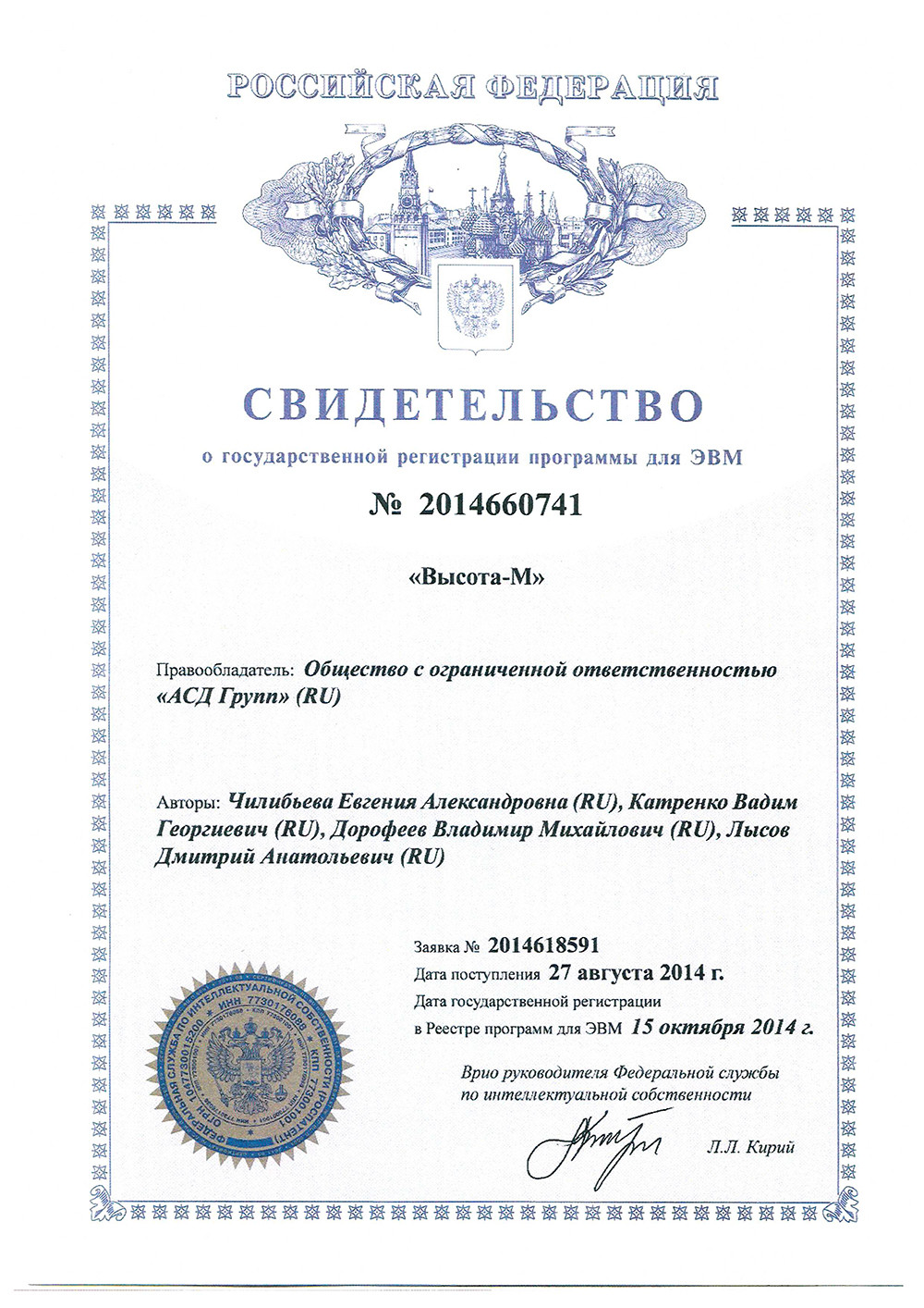 Средняя стоимость программного обеспечения «Высота-М» составляет 3 200 000 рублей 00 коп.